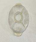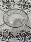 Antique glassware for pickles or crudites with lidded center oval section for dip or sauce or olive pits even. This piece has signs of age and wear as shown in the photos. No cracks or chips. Length is 13 inches x 8 inches wide x 4 inches high.
