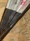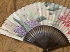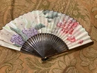 This is a charming antique Japanese folding hand fan , featuring a delicate design of purple, red, and green floral elements painted on fine paper. Most likely produced in Japan for the French market , this fan was imported into France at the beginning of the 1930s , when such exotic decorative pieces were highly prized in European interiors. The fan is made with paper leaf panels mounted on thin painted sticks , allowing it to fold and unfold gracefully. The artwork retains a soft vintage palette and shows elegant signs of age, enhancing its authenticity. Measurements: Length when fully deployed: 15 inches Height: 8 inches Condition: Good antique condition , with gentle wear consistent with age Minor creasing or surface wear may be present; please refer to photos Structurally sound and folds properly This piece is both a decorative and collectible item , perfect for lovers of Asian art , 1920s décor , or vintage fashion accessories . Ships carefully packed to ensure safe arrival.