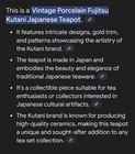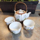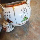 This Antique Japanese Kutani Porcelain Teapot with 3 cups is a classic and elegant addition to any tea lover's collection. Made of luxurious white porcelain, this teapot features a traditional Japanese style with a delicate design that is perfect for all occasions. The teapot comes with three cups, making it ideal for serving tea to guests or enjoying a relaxing cup of tea alone. Its timeless beauty and craftsmanship make it a valuable and cherished piece for any tea enthusiast. See photos for condition. No chips or cracks.