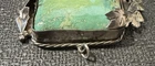 Antique Large Navajo Sterling Silver Turquoise Pendant Solid Mount 3” O Ring Solid with hallmark/stamp. OOAK Weight- 99 grams/3.2 oz Color grade-Blue Green O ring on top of setting. Laurel Leaf/Feather/Roping surround on setting. Backing of mount is closed with sterling Silver with Hallmark