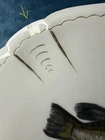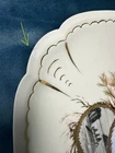 Beautiful and rare 10-piece antique French Limoges porcelain fish service set by M. Redon, circa 1880–1906. The set includes one extra large serving platter (23.75” x 9.75”) and nine matching plates, each featuring finely detailed fish scenes with hand-applied gold accents and painted highlights over transfer decoration. One plate bears the green M. REDON LIMOGES backstamp, typical for high-quality export porcelain from the late 19th century. ⸻ ✨ Set Includes: • 1 Large serving platter – 23.75” x 9.75” • 9 Matching fish-decorated plates – approx. 8.5” ⸻ 📌 Condition: • Excellent antique condition overall • No cracks or repairs • Some plates have small rim chips – see photos • Gold trim shows light wear consistent with age ⸻ This Limoges set is a rare collector’s find — perfect for vintage seafood presentations, display, or elegant antique decor. Priced accordingly due to minor edge wear. 📦 Ships professionally packed and insured. 📍 Local pickup available in Melbourne, Florida.