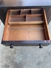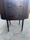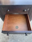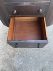 This vintage sewing cabinet is a beautiful piece of history. Made from solid wood, mahogany, and stained finish, it features three drawers and two doors with wooden knobs. The unit is 38.8 lbs. and measures 28 in. x 14 in. x 29.5 in. with varying interior widths. The cabinet is an original antique from the early 1900s and has a lift-up door mechanism with concealed hinges. Perfect for any collector or sewing enthusiast, this Martha Washington sewing cabinet is a unique addition to any home decor. The cabinet is free-standing and has one shelf. The handle finish is wooden knobs and the handle material is wood. The cabinet is an antique style with a finish of stained.