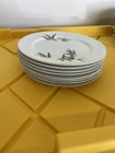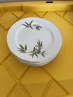 For sale is a set of six antique Narumi China salad plates from the 1940s. The plates feature a beautiful bamboo pattern in green on white bone china. Made in Japan, these vintage plates are a stunning addition to any collection. The set includes salad plates and regular plates, perfect for serving a variety of dishes.