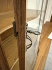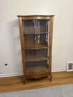 A beautiful antique oak curio / china display cabinet, circa 1920s–1930s. Each shelf features a built-in plate groove, allowing dishes or decorative plates to stand securely for display — a classic detail found in early 20th century china cabinets. Lower drawer ideal for storing flatware or serving pieces. This cabinet features: • Solid oak construction • Original waved glass door • Three interior display shelves • Serpentine (curved) shelves • Shelves include original plate grooves for upright china display • Single lower drawer • Cabriole style front legs • Original hardware • Key present in lock The warm grain and graceful curved lines give this cabinet classic charm. Perfect for displaying china, glassware, dolls, art glass, or treasured collections. Approximate Dimensions: 29” Wide 55” Tall 14” Deep Excellent antique condition, original hardware with beautiful aged patina. Drawer interior clean. Cabinet is solid, beautiful, and ready for use. PICKUP ONLY – Southwest Michigan (Mendon/Vicksburg area). (Delivery may be available within reasonable distance for an additional fee.) Vintage Kalamazoo is located in southwest Michigan and all of our items have been sourced in this region. All descriptions, attributions, and dating are provided to the best of our knowledge based on visual inspection and research using reference materials, professional collector and group inquiries, and publicly available online sources. If you have corrections or historical insight regarding our items we welcome and appreciate messages! Happy shopping and hope to see you often!