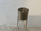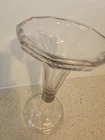 Has a tiny chip. See photos This antique glass shelf stand is a unique and beautiful piece that will add character to any space. The figural shape and art deco style make it a great statement piece for displaying hats or wigs. The clear glass with a pink/purple hue gives it a vintage feel, and it's an original piece from the United States. The pedestal is unscrewed and has a diameter of 5 inches, with a height of 10.5 inches. It weighs 1 lb 12ozs and is made of pressed glass. This two-piece set is perfect for collectors of unique and vintage glassware. Care instructions are included, and it's recommended to hand wash only.