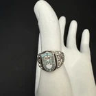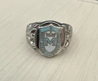 Antique Ring SK & F Sterling Mary Queen Of Heaven School Class Ring (1969) Size 6.5 Some of Turquoise Enamel is Faded; otherwise in good vintage condition. See Photos (5470)