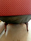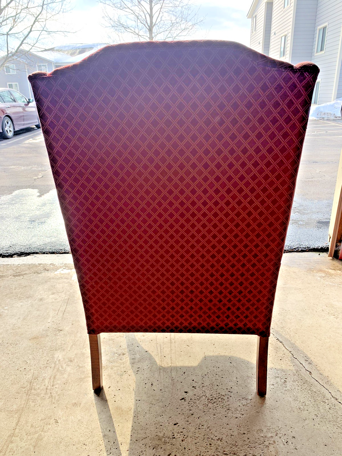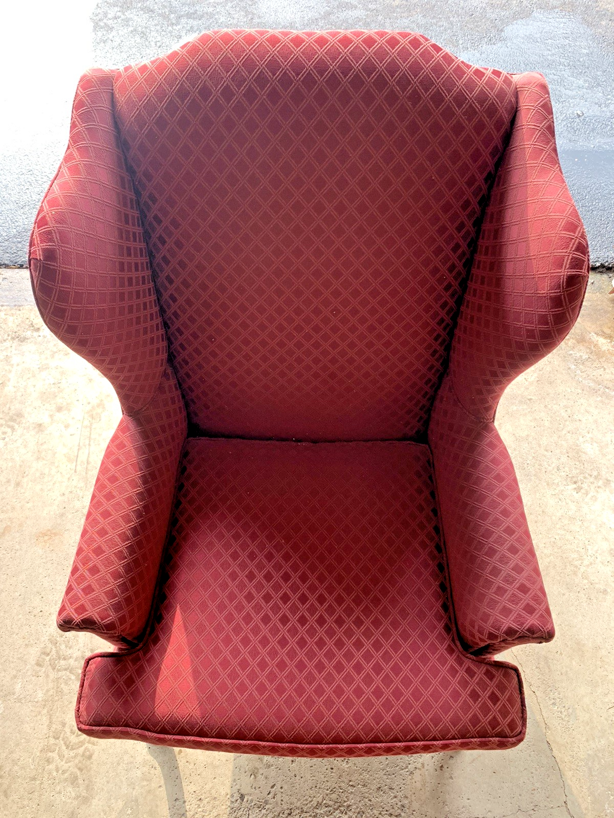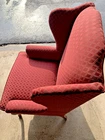 The Antique Sam Moore Upholstered Wingback Chair is a stunning piece of 20th-century Queen Anne furniture in maroon mahogany. This fully assembled chair features a diamond pattern upholstery, making it a unique and stylish addition to any indoor space. Crafted with quality materials and attention to detail, this wingback chair exudes a sense of luxury and sophistication, perfect for those seeking a classic and timeless design element for their home. Chair is in excellent condition almost new like with the fabric and stitching. The legs have some scuffs that might be able to be scrubbed off. Chair measurements 45" Height 25" wide 25.5" D Will send extra pictures if asked