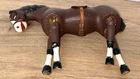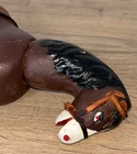 The Vintage SCHOENHUT Donkey is a charming hand-carved toy, featuring leather ears and movable parts. Made in the United States between 1904 and 1933, this gray-brown donkey from the Humpty-Dumpty Circus is a unique piece that captures the nostalgia of a bygone era. The craftsmanship and attention to detail make it a valuable addition to any toy collection, especially for those who appreciate the quality and history of traditional vintage and antique toys. The horse is in good condition considering that it over or close to 100 years old. There is minimal paint loss. His head does not stay upright on its own . He measures approximately 10” long x 9” tall 9when head is held upright) x 2 3/4” wide. I believe that this horse is an earlier version, as he does not have the felt strip to help hold up the head. Please contact me with any questions or concerns, thank you!
