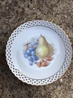 This set of 5 antique plates from Schumann Arzberg, Germany is a true vintage treasure. The round plates are made of porcelain and ceramic, and feature a beautiful multicolor pattern of fruits and flowers. The set includes bread plates, salad plates, and dinner plates, perfect for any occasion. The plates were manufactured in 1972, during the 1970s era of art glass production. They are studio crafted, with a decorative design that makes them a great addition to any collection. The production style is art glass, with a production technique of studio crafted. The plates are part of the Wild Fruits product line, and are a perfect example of German craftsmanship. 1 plated as a repaired edge
