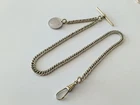 Vintage Silver Chrome Pocket Watch Chain with Snake Link Dog Clip & T-Bar