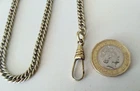albert pocket watch chain with T-bar, dog clip & 1948 coin fob true vintage / antique, pre-owned, used fully functional good to use condition long length, double (close link) curb chain a little over 15" long (inc. Dog Clip to T-Bar) + 3" drop chain & 1948 sixpence coin (King George VI head) the chain is best described as gold tone, soft gold / warm silver in colour, the fittings are more yellow / brass in colour, i assume originally silver plated on brass or brass / mixed metal alloy base, all plating has worn from fittings (not unusual as these are the areas that 'see the most action' & are handled most) so they are gold in colour, the plate on the chain has worn thin (hence the pale gold / silver hue) and through to base in some places - none of this affects the functionality of the fabulous old chain. If you have a much loved / well worn silver plated or pale gold tone base metal pocket watch of similar age chances are they'll be a match made in heaven ;o) if you prefer honest authentic character & charm over mass produced imported modern 'imitation' chains this could be the the chain for you , you'll never see a chap with one identical to yours - this is a piece of history with as many years wear ahead of it as behind impossible to date chain exactly as there are no marks - safe to say 1st half 20th century, probably interwar long length makes this perfect for the 'fuller figure' / taller person weight: 24g please take a look at pictures for more detail, all taken in natural light with penny coin shown to give scale & colour comparison (not included in sale ;o) please note we do not re-plate or polish antique or vintage watch chains, we inspect & ensure all clips & bars are secure & fully functional, we then clean to remove any excess dirt but otherwise maintain original patina - if you prefer an item to look like new you could of course have it re-plated or polished I’m always happy to combine p&p for items & lots paid for in single transaction on one invoice. please ask or wait for combined invoice before making any payment to ensure maximum saving on shipping. UK or Overseas: your parcel will always be sent securely packed, tracked door to door & insured to full sale value