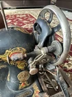 Antique find! Motor works when plugged in and you push the pedal. The cord is way bad as shown in pics, could probably stop working any minute. There is no belt so I could not test the needle when engaged with motor. The lid does not seem to stay on, it covers the machine and sits snug, but I am not sure how it is supposed to lock on. I do not see a light, not sure if this year had a light, unknown. This is a project.