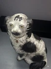 Beautiful antique Staffordshire dog statue, about 11.5 inches tall. Bottom is cracked off so there are no markings. Otherwise no cracks on exterior. Very beautiful mantle piece. Any questions please ask.