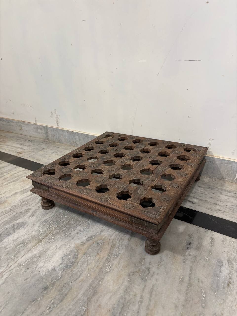 Antique Style Wooden Low Coffee Table Bajot | Hand Carved Vintage Chowki Condition – Elevate your space with this beautifully hand-carved wooden low coffee table (Bajot) — a stunning piece inspired by traditional Indian craftsmanship and vintage design. Key Features: 🪵 Solid wood construction with old-style hand carving details 🧵 Authentic vintage look, each piece has unique texture and character 🪑 Multipurpose: Use as a coffee table, puja chowki, plant stand, or decor piece 🌿 Perfect for boho, rustic, ethnic, or eclectic interiors 🖐️ Handmade by skilled artisans, showcasing fine traditional Indian carving H * L * W = 14 * 52 * 52 cm Custom Duties & Tariffs - Custom duty or tariff if any at the destination has to be paid by the buyer. We shall not be responsible for it. In case of any refunds the custom duty paid by you is not our responsibility. Note : The customs at your country may require duties and/or certain documents to clear the products. In case it is not provided by you or you are not reachable within 2-3 days of the customs, DHL, Fedex trying to contact you, the order will be either returned to us or destroyed. We shall not be liable for any claim thereafter.