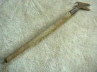 This is a vintage or antique telephone lineman's tool. This is a wood handled pole tool, with pull hook, and alligator Vee push sides. Looks like the alligator wrench would also work on cross brace nuts. Tool is 27" in length but handle has been broken. Looks like there are some markings on head but I am not able to decipher them. Head is cast iron or steel.