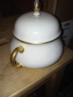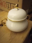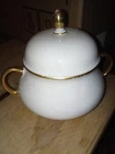 This Antique Thomas Bavaria Sugar bowl is a stunning piece of decorative china that will add a touch of elegance to any home. The includes a sugar dish and matching lid, with a beautiful Golden lined trim Made in Germany in the early 1900s, this original vintage set is a must-have for collectors With its exquisite gold trimming and delicate design, it is sure to impress. Whether you're hosting a formal tea party or simply looking to add some charm to your kitchen, this sugar dish is the perfect addition to your collection. Like new condition- no breaks or flaws. Stamped on bottom as pictured. Thanks for looking!