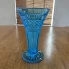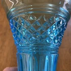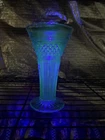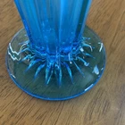 Gorgeous Tiffin-Francisan Baronial Blue Vase Rare Find 1920s. This is a really pretty blue color. Very small chip on upper outside rim as pointed out in picture number 7. Size of chip is approximately the diameter of tip of pointer. Small amount of wear on inside of upper rim most likely consistent with age. No other chips cracks. Please see photos.