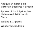 Antique Victorian 14k Brooch 98 Pearls , 5.1 Grams. Shipped with USPS First Class.