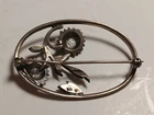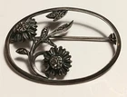 Antique Victorian 835 Silver Hallmark BR With Hematite Stones Brooch