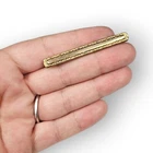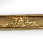 Antique Victorian 1890's scrolled edge bar brooch/ broach/ pin Classic late Victorian era bar brooch with a shiny rectangular center panel and an ornate scrolled design around the edge Center panel can be engraved if you choose Gold filled front, brass back Early safety clasp with a riveted hinge *Very light discoloration on front, light discoloration on back Stamped Pat Apl'd For (Patent Applied For) Very good antique condition Measurements are approximate Length: 2.25" Width: 1/4" J3947