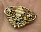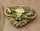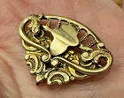 This lovely old piece of Victorian jewelry belonged to my great-grandmother and has been handed down in my family. It features a sinuous design, delicate engraving and beautiful details rendered in a metal I presume to be brass because of its color. There are no hallmarks or makers' marks. It is quite a versatile piece of jewelry as it can be worn as either a brooch or pendant depending upon your outfit or mood. The piece is in very good condition as it has been safely tucked away in my jewelry box for years. As it is leaving my family, I hope this piece of jewelry will go to someone who will enjoy wearing it and appreciate its vintage style and charm.