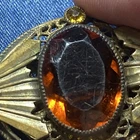 Antique (probably 20-30’s) brass filigree brooch. Faceted Amber glass Main glass shows wear- see pics Sold as is 2” x 1.25”