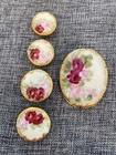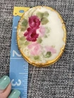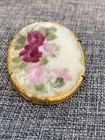 This antique Victorian brooch features four hand-painted tea roses with raised gilt accents. A rare find, this pre-owned piece is perfect for collectors of vintage and antique jewelry. The brooch has a unique design and intricate details that make it a beautiful addition to any collection. The brooch is classified under the Jewelry & Watches category and specifically under the Vintage & Antique Jewelry and Brooches & Pins subcategories. The type of the brooch is a brooch, and it is crafted with care to ensure its durability. Own a piece of history with this antique brooch that will add a touch of elegance and sophistication to any outfit.