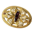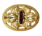 Antique Victorian Glass Amethyst Color Brooch Pin Scarf Shawl Collar. Measures approx. 2.25” Overall good condition with very little surface wear. The glass has some micro chips to it. Not too bad.