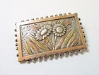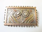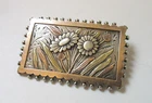 Antique Victorian Aesthetic brooch in solid sterling silver with applied gold and rose gold. Maker's mark N&H and hallmark on reverse. Deeply engraved flowers and leaves with beaded edges. Old C-clasp on reverse. Measures 2-7/8 inches long and 1-1/8 inches tall. Excellent condition.