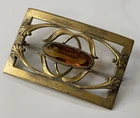 Antique Victorian Collar Brooch Pin Cintrine colored Glass Stone. Measures approx. 1 7/8” wide x 1 1/8” tall Has some surface wear but looks overall very good.