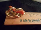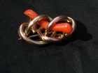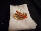 Antique Victorian Gold Brooch Pin with Beautiful Wrapped Coral. Excellent condition. Good working clasp pin. No hallmarks as is typical of this time period. Beautiful colors. Striking. Nine carat gold with gold-filled supports.
