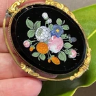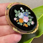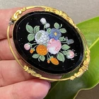 Antique Victorian Hand Painted Flowers Gold Filled Brooch Pendant Repousse Frame Artfully painted flower bouquets have been blooming for over 120 years Weight 14.4 grams Measures 1.5" North to South by 2" East to West