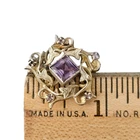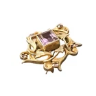 Add a touch of Victorian elegance to your outfit with this stunning 1" antique brooch pin. The gold-gilded design features a beautiful amethyst in a bezel setting, surrounded by smaller amethyst gemstones. The brooch is made of gold over brass and boasts a luxurious and timeless style that is perfect for any occasion. The stones were tested for authenticity with a PresidiumGemTester. This brooch is a must-have for any jewelry collection and is sure to make a statement. The rich purple color of the amethyst stones and the intricate design of the brooch make it a true work of art. Whether you're dressing up for a special event or adding a touch of glamour to your everyday look, this antique brooch pin is the perfect accessory. The pin is silver and could be a replacement.