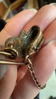 Antique Victorian gold plated watch fob ornate design. Chain is 4.5 inches long. Fob is 1-3/8” wide x 7/8” high. Has some verdigris inside. Gold plating on front looks great, the plating on the back and bar is rubbing or rubbed off. Not sure it was ever plated on the inside. Extra jump ring on the bar- missing something? I believe it may be missing the clasp/clip as well. Feel free to reach out with any questions!