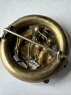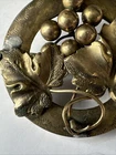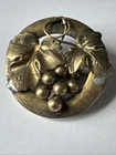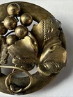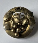 Antique Victorian Grapevine Brooch – Ornate Brass Pin with Grape Cluster Design Step back in time with this exquisite Victorian-era brooch, a beautifully detailed representation of the elegance and craftsmanship of the late 19th century. This circular brooch features an intricate grapevine motif, showcasing finely textured leaves and a cluster of polished grape beads. The artistry highlights the Victorian love for nature-inspired jewelry. Crafted from gold-tone brass, this brooch has developed a charming patina over time, adding to its antique character. The back is fitted with a classic C-clasp pin, typical of the Victorian period, ensuring its authenticity and vintage appeal. Details: • Era: Victorian (1837–1901) • Material: Gold-tone brass • Design: Grapevine with leaves and grape cluster • Size: Approx. [insert size here] inches in diameter • Condition: Good antique condition with minor wear and patina consistent with age. Pin mechanism is functional. This stunning brooch is perfect for collectors of antique jewelry, costume enthusiasts, or anyone looking to add a touch of timeless elegance to their wardrobe. It also makes a thoughtful gift for lovers of vintage and historical fashion. Don’t miss this opportunity to own a genuine piece of Victorian history!