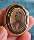 Antique Victorian mourning gold and enamel photo portrait brooch. I believe this is gold plated but have not had it tested. Looks to be a tintype photo under original glass. The photo is not secure and moves around but does not come out. This piece measures 1.65" x a little over 1.25". Please look at all pictures and contact me with any questions. All items are sold as is and no returns. Payment is expected within 24 hours of auction end please. Thanks so much!