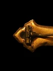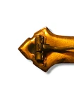 Introducing a stunning Antique Victorian Mourning Brooch, a rare 1870s relic that combines the elegance of the Victorian era with the somber symbolism of Momento Mori. This 2.25-inch brooch is made from 12k gold filled and is in great condition, making it a truly special find for any collector of vintage jewelry. The centerpiece features a black dove, a symbol of peace, and the black color as a representation of death, suggesting "Rest In Peace." The cap of the brooch has a faux appearance of being prong set but was permanently 'capped', which hints at the possibility of containing something of the deceased. From a side view you can see that it is capped. This one-of-a-kind brooch is a beautiful, historical and meaningful addition to any collection of antique jewelry.