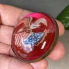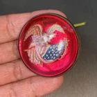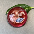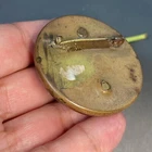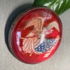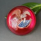 Antique Victorian Silver Love Birds Dove Couple Openwork Brooch Pin Measures 1.75" Equipped with C-clasp Victorian c.1890-1910 domed convex glass Bridle Rosette brooch style pin. Features a die-cut American Eagle on the flag. Was designed to slide a horse bridle strap through.