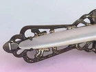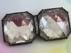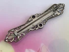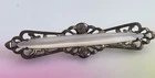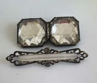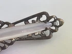 Elegant Victorian brooch pair featuring glass bar pins with delicate pearl shell accents. These antique pieces are perfect for adding a touch of vintage charm to any ensemble. The bar pin measures 2" long and the glass pin measures 1.5" long. Both have paint wear and age. They are in good wearable antique condition. • Antique Victorian design • Glass bar pins • Pearl shell accents • Timeless elegance • Perfect for collectors