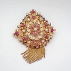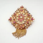 Antique Victorian Pendant Brooch 18K Gold Seed Pearls Rubies Tassels Victorian era 18k (.750) multi-tone gold oval form combination of a brooch and pendant in floral designs with tassels, embellished with Rubies and Seed Pearls. This magnificent antique brooch or pendant is 65 mm long, 48 mm wide, weighing 18.1 grams. [EA4486] Shipping/Handling/Insurance Policy All items are carefully packed and insured, with no handling or packing fees, ever. Please do not attempt to return an item due to shipping damage. Should it occur in spite of our careful packaging, this must be handled through the shipping agent with an insurance claim. We will be happy to assist in this. Always be sure to retain all original packaging if a claim is to be made as the shipping agent may request to examine it. That being said, in over 10 years of internet shipping, we have had only one damage claim. Shipping is usually done within 24 hours of the receipt of a cleared payment. Shipping may delayed for a few days if we are away from home at an Antique Show. Please feel free to contact us with any inquiries about our items or shipping. We will respond within 24 hours. Any shipping over payments will be quickly refunded. Other Information Sales tax applies for California. A valid resale certificate is required for tax exempt sales shipped to California. International buyers are responsible for all customs fees, duties and VAT.