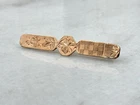 This is an Antique Victorian brooch made of gold filled metal. The brooch features an etched and chased design with clover, floral, and scrollwork motifs. It is a fine jewelry piece that exudes a sense of beauty and vintage charm.