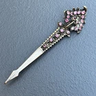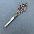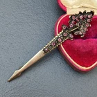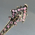 Description ~ Antique Victorian 1880's -1890's ~ Very Well ~ Handmade ~ British Raj Anglo Sri lankan / Ceylonese gold gilded Silver ~ pink sapphire Kondakoora Pin brooch ~ Pin Brooch features 23 (missing one ) faceted genuine pink sapphires which are prong set on a gilded silver base ~ Pin is unmarked and unsigned (as most older pieces were) ,but acid test positive for higher grade silver ~ Pin has a simple C hook clasp on the backside. Measurements: Measures 3 1/2 inches in length x maximum width of 3/4 inches . Weighs 9 grams on my weighing scale . Condition: Pin is more then 100 years old and in good antique condition ~ As the stones are natural they vary in shape and color ~ Missing one stone and one replaced stone ~ Can see few with minor surface wear to metal and stones ~ There is light wear to gold gilding and few flea bit size nicks which are also noticeable upon closer inspection ... Please Note ~ As Antique /vintage items are previously loved /used please do expect some minor wear like surface wear /dents /dings and metal discoloration . All items are carefully inspected and major flaws will be listed separately ~ Plenty of photograph are added so please study the photos carefully as it is also part of description or if you need more pictures just message us we will be happy to provide them :)... Box is for display purpose does not included with the item .. but your items will be packed carefully and shipped promptly . Powered by ExportYourStore.com