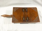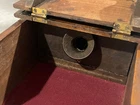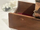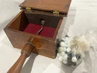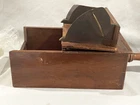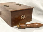 This is an old wood Ballot Box used for Fraternal voting. Some scrapes and rough spots. One corner is chipped. Overall solid condition. Top measures 6 5/8" x 10 1/4". 3 5/8" high. Handle screws on and off. Comes with marbles. PLEASE NOTE THAT OUR BUSINESS IS ANTIQUES AND VINTAGE COLLECTIBLES. ITEMS ARE PREVIOUSLY LOVED AND MOST NOT IN PERFECT CONDITION UNLESS OTHERWISE STATED. MANY OF THE ITEMS ARE VERY OLD. PLEASE VIEW PHOTOS CAREFULLY AS WE HAVE DONE OUR BEST TO SHOW ANY IMPERFECTIONS IN THE PICTURES. Listing and template services provided by inkFrog