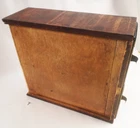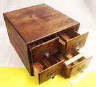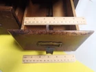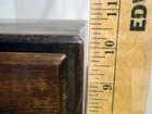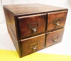 Antique 4-Drawer Oak Wood Library Index Cabinet fits Stamp Glassines Dimensions: 13½W x 15"D x 10"H Stacked Weight: 18-lbs, 9.5 oz Two separate cabinets of 2-drawers, one resting on top of the other. The lower cabinet does not have a top, as shown. Inside width of drawers is 5-inches, exterior is 6-inches Each drawer has a brass dovetail pull with an ID tag slot Drawers have adjustable metal brackets to keep contents compressed Good Condition on exterior surfaces with some imperfections (could refinish nicely). Drawers and components function as expected and appear very well.
