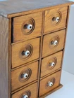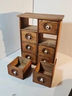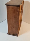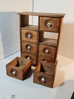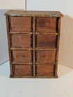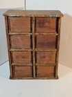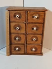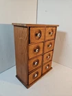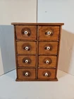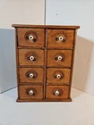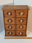 Antique Wooden 8 Drawer Spice Box Cabinet/Apothecary Chest Primitive Porcelain Signs of age and use. Sold as is seen. Great country decor. Product will be shipped timely and packaged with care. Offers are encouraged. Please feel free to reach out with questions. Please see pictures. Thank you. Good used condition. Light wear from age and use. Markings from age and use. See pictures This antique spice box cabinet is a charming addition to any home. With its wooden construction and porcelain knobs, it exudes a rustic yet elegant vibe. Measuring at 9.75" in width, 4.75" in length and depth, and 12.75" in height, it provides ample storage space for your spices and other small items. The cabinet features 8 drawers with a knob pull door style and is both wall mounted and free standing. It is handmade and weighs 4.5lbs. The antique piece dates back to 1920-1949 and was manufactured in the United States. The set includes drawers and the door handle material is porcelain. BS2