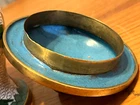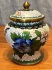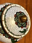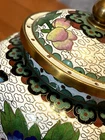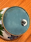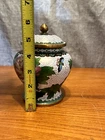 Body is 4" tall, with a 1/2" neck, lid is 2" tall including knob on top. A minor bend on the lip of the lid, otherwise no flaws that I can see. Take a look at the pictures and judge for yourself, feel free to message with any questions!