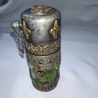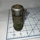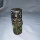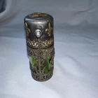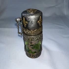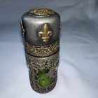 This antique green glass perfume bottle optimizer is a unique addition to any collection. The bottle is accented with silver and brass, adding a touch of elegance to the design. Made in France, this atomizer is perfect for those who appreciate vintage perfume bottles. The brand of this perfume bottle is unknown, but its distinctive appearance makes it a must-have for collectors of decorative glass or crystal. The bottle has been used but remains in good condition, with only minor signs of wear. This item falls under the categories of Collectibles, Vanity, Perfume & Shaving, Perfumes, and Decorative Glass/Crystal. Don't miss out on the chance to add this beautiful piece to your collection.