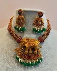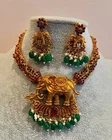 This stunning jewelry set is a perfect addition to any collection. The antique set features a matte finish gold-plated necklace and earrings, with a beautiful gold color that adds a touch of elegance to any outfit. The set is made of high-quality 835 silver metal, which ensures durability and long-lasting wear. The set comes from India, and its origins add to its unique charm. The main stone creation is unknown, but the set includes a necklace and earrings that are perfect for any occasion. This jewelry set is a must-have for anyone who loves antique jewelry, and it is sure to make a statement wherever you go.