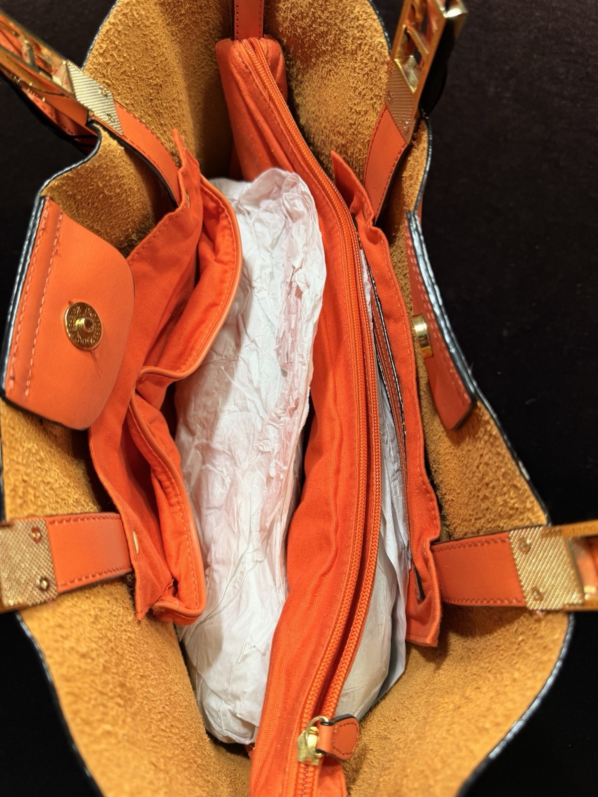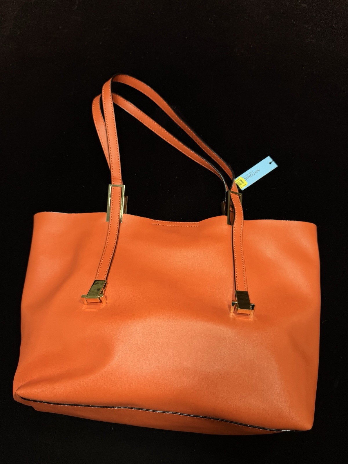 The Antonio Melani Bright Orange Tote Bag is a stylish and spacious accessory designed for women on the go. Made from luxurious leather in a solid auburn orange color, this rectangular tote features double handles for easy carrying. With multiple pockets for organization, this large bag is perfect for everyday use and adds a pop of color to any outfit. The Antonio Melani brand ensures quality craftsmanship and timeless style, making this tote a must-have addition to any wardrobe.
