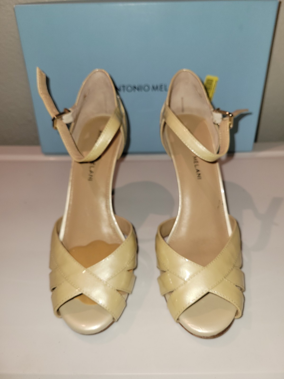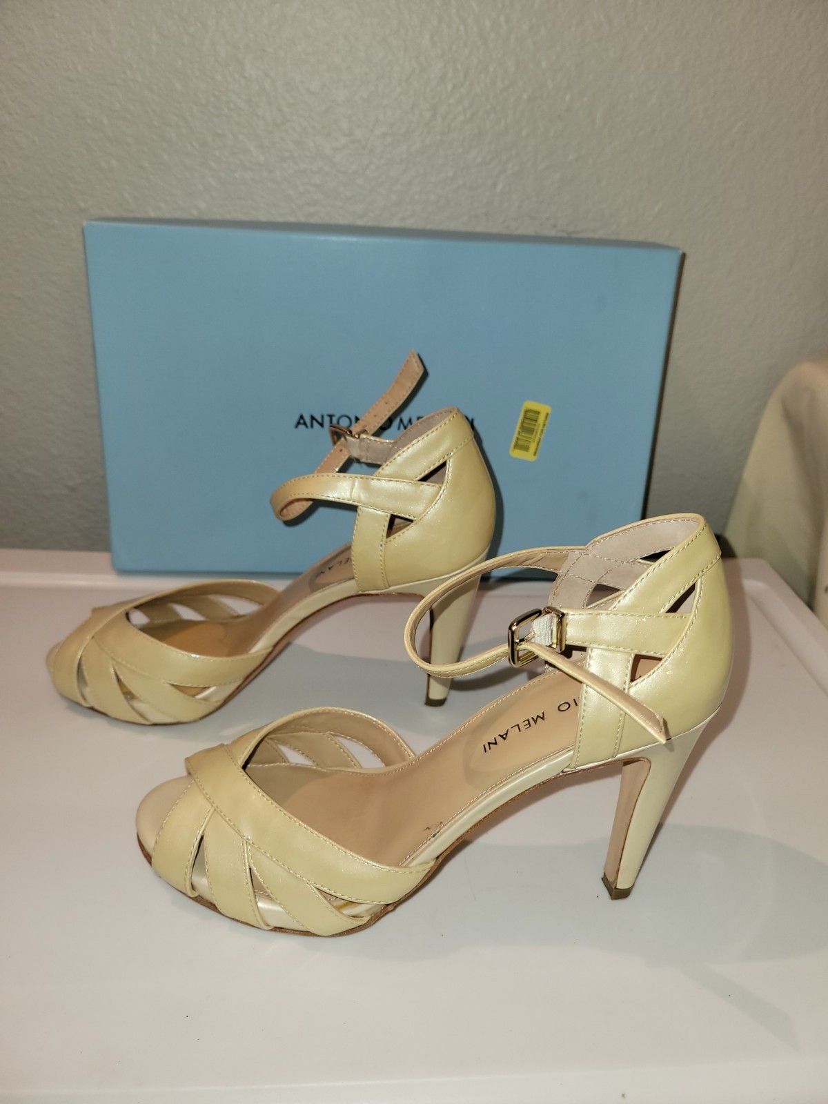 Antonio Melani Calista119 Nude Beige High Heels – Size US 7.5 (EU 38 / UK 5.5) – Pre-Owned Step into timeless elegance with these pre-owned Antonio Melani Calista119 high heels in a versatile nude beige "Rice" color. Crafted with a refined silhouette and premium materials, these heels offer both style and comfort—perfect for both professional and formal occasions. Lightly worn and well-maintained, they are an excellent addition to any sophisticated wardrobe.
